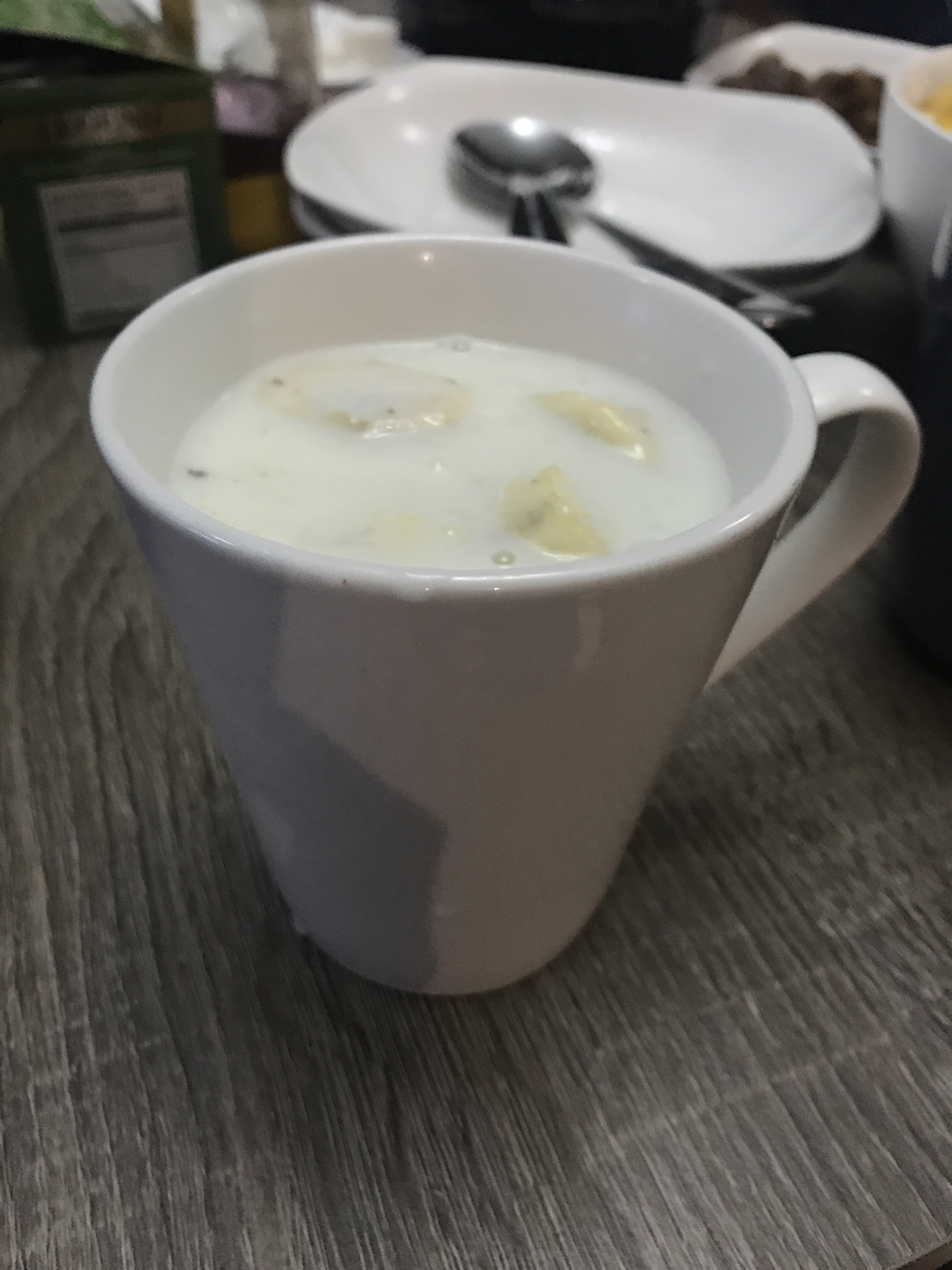 Put milk in a pot and bring to a boil. Add in cinnamon and ginger powder. Stir. Mix corn flour and cold water to make a paste. Add into the milk and keep stiring. (You should have a runny thick kind of consistency. Dont over cook it else itll be too thick and turn to tuwo lol). Turn of heat and add in your banana slices. Sweeten with honey or sugar.