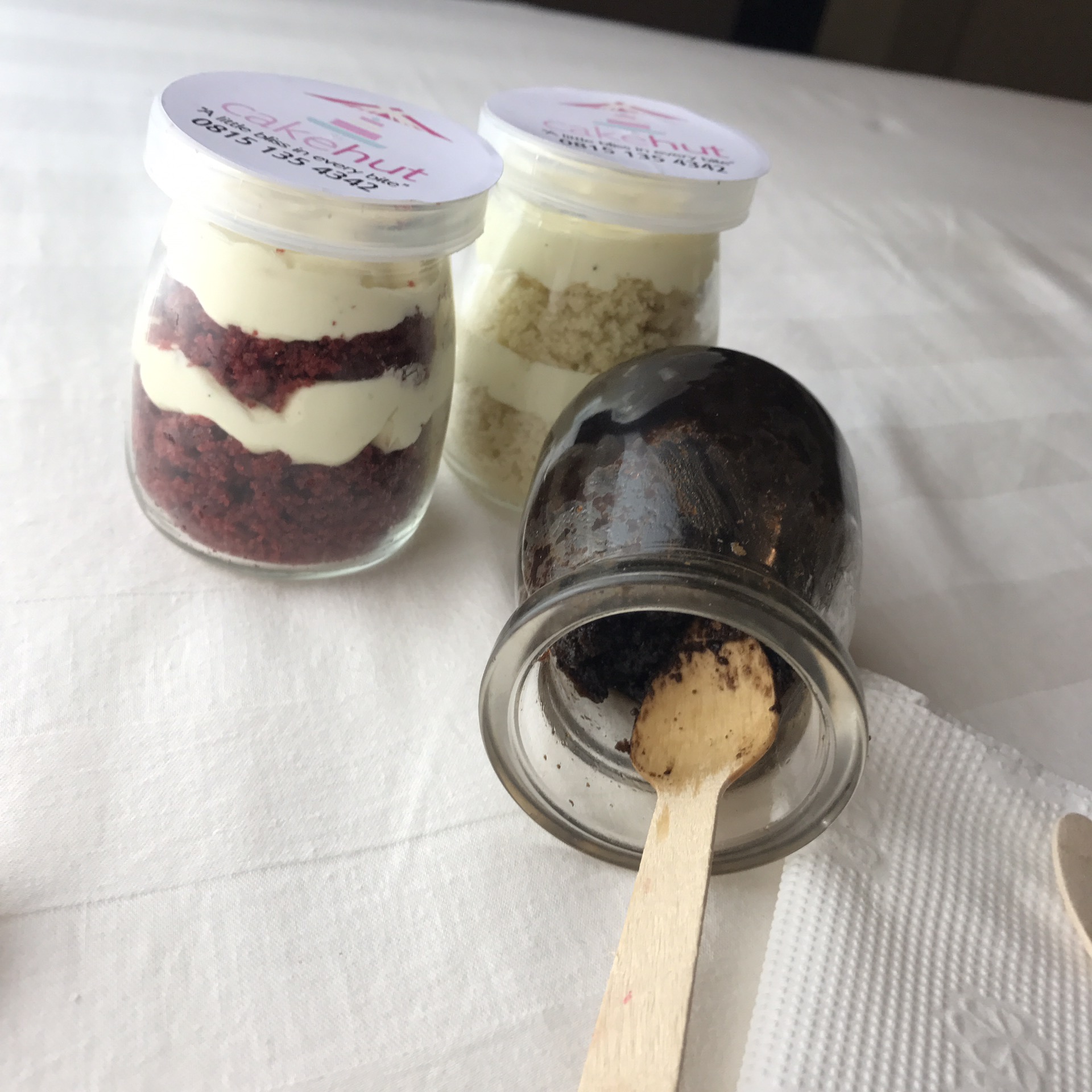 So few days back I received a pack of 3 cakes in jars from Cake hut. The packaging was really cute and aesthetically attractive. It was really one of a kind (because lets face it, in this Nigeria not everyone does high quality packaging). The jars were really thick and made of glass. They can be recycled also. (I mean you can actually take them back to be refilled with cake). You can also use them to store some stuff, like spices, honey, bakhoor, sugar etc.