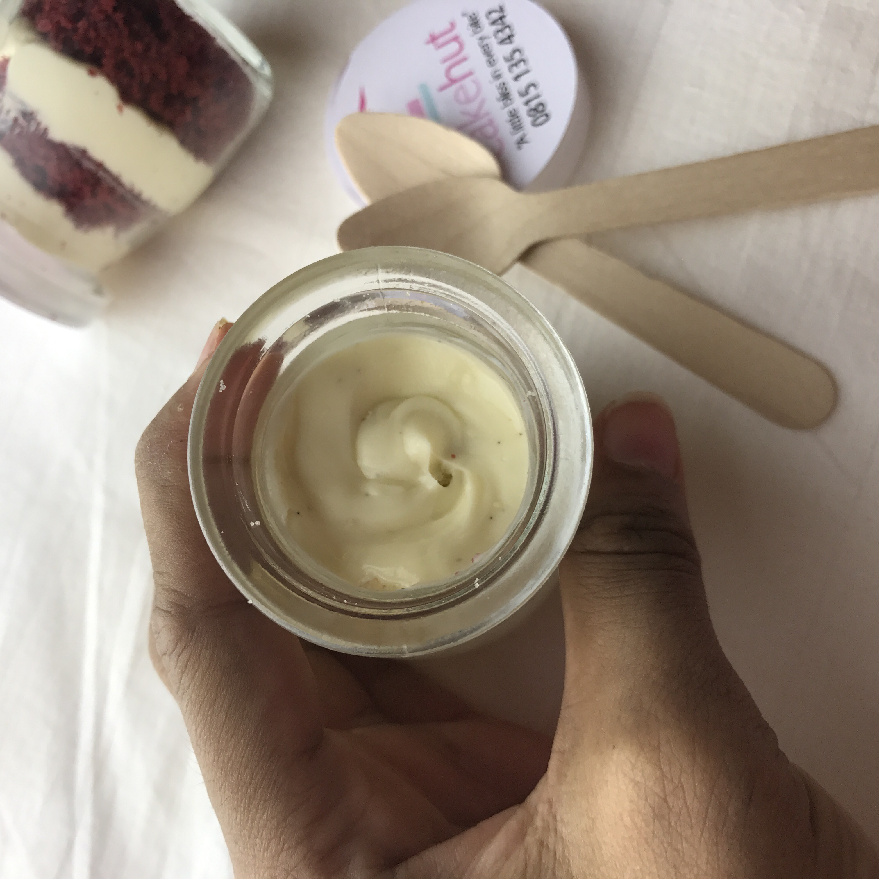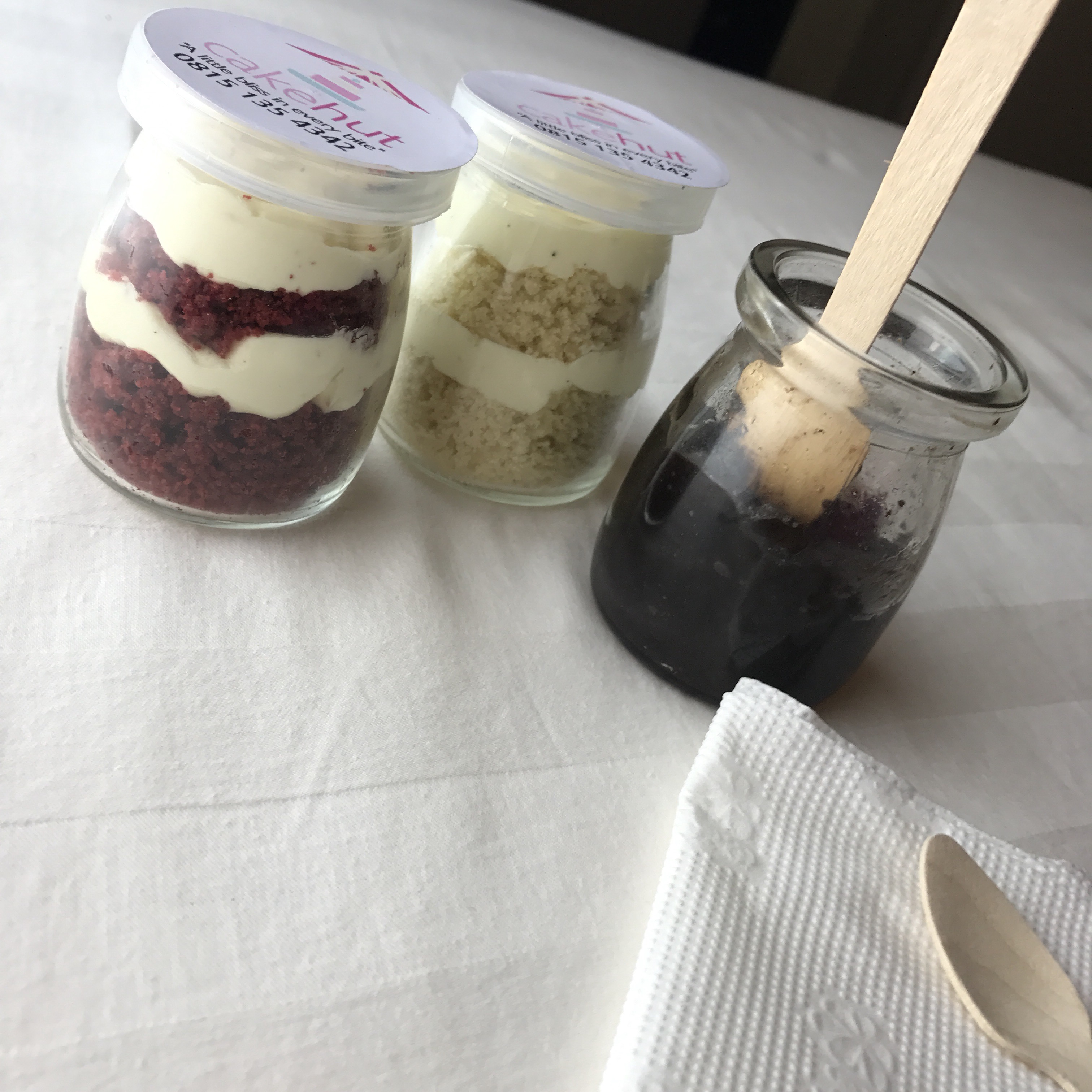 So I got the Red velvet, Vanilla and brownie. They came with cute little spoons. I tried the red velvet first, I took out the frosting and ate the cake directly. The taste was okay but it wont blow your mind. I then tasted the frosting and it had little or no sugar in it. If youre on a low sugar diet I guess this Red velvet right here is your guy.