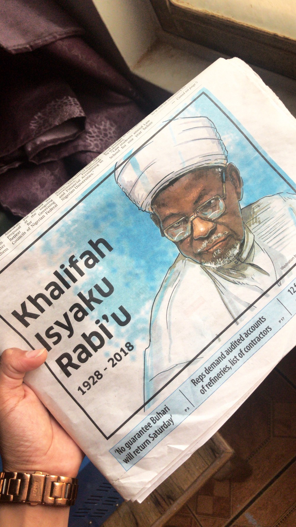 Khalifa, my grandfather was born on 9th October 1925, in a colonial Nigeria, in Kano, after our great grandfather moved to Kano from Saye. I wouldn’t say my grandfather was Hausa because our great grandmother was a pure Fulani woman, and great grandfather was Babarbare (now known as Kanuri).