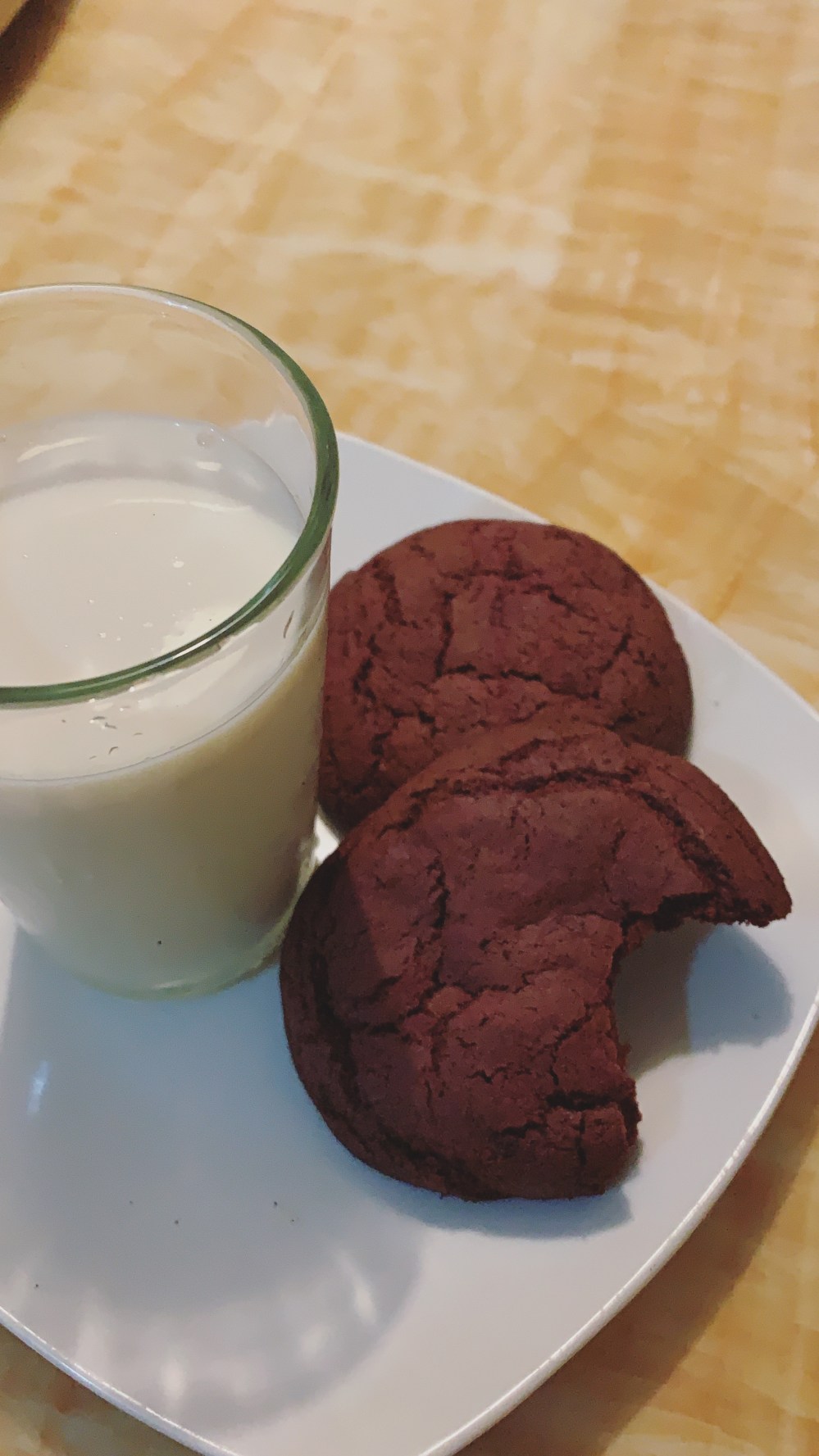 Guys! You wont believe it if I told you that I randomly woke up at 2am craving some red velvet cookies. Maybe in my dream I saw some or they’ve just been on my mind for a while. I checked my kitchen and I didn’t even have flour, how is this going to work then? I kept checking then i saw a chocolate cake mix box and then my cookies were about to happen. (stacked cookie photo isn’t mine but the milk and cookie photo is mine)