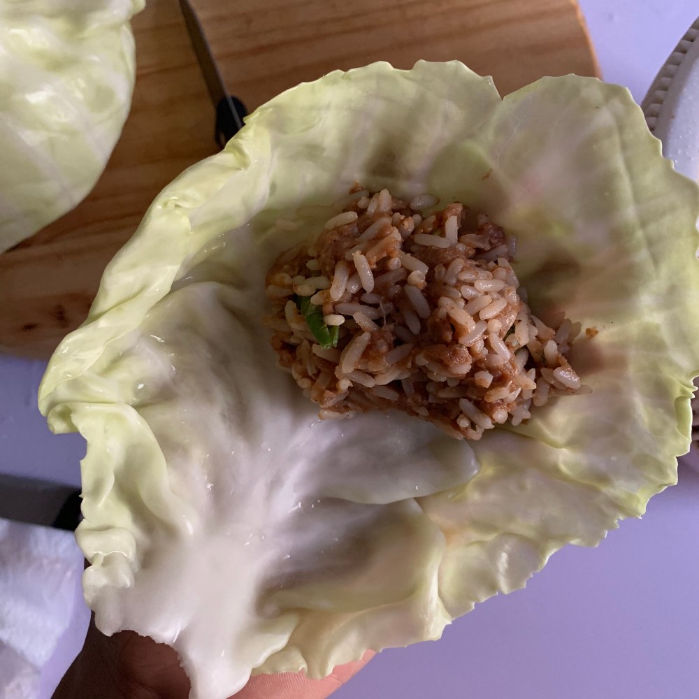 Get a cabbage leaf and put a bit of the rice mixture and fold.