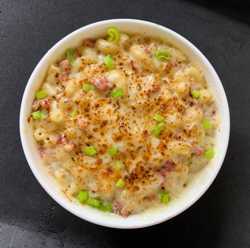 Add in cheese and stir till its melted. Transfer to a bowl and sprinkle shredded mozzarella. Microwave for 2mins.
